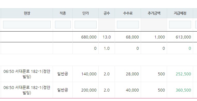 2. 일보관리 추가금액 입력 버그 기능 수정