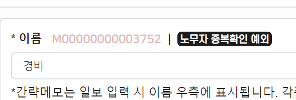 * 중복체크에 제외할 노무자가 여러명일 경우 코드를 구분자 콤마(,)를 이용해 입력해주세요.