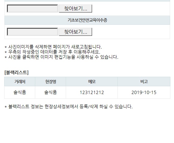 1. [정보관리 > 현장관리 ] 의 현장 상세화면에 "블랙리스트" 추가하는 영역이 추가되었습니다.