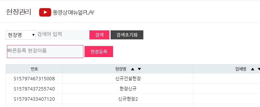 업체를 등록 후 업체의 현장을 등록하는 2단계 구조의 입력 방식이 변경되었습니다.