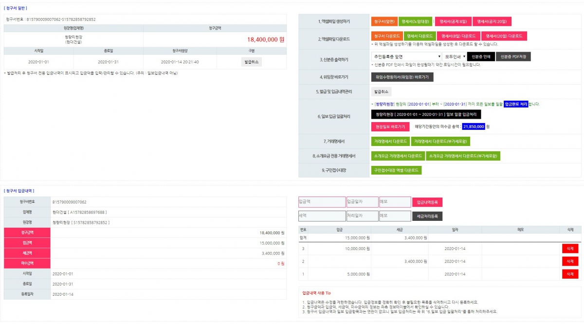 청구서관리 상세화면을 개편하였습니다.