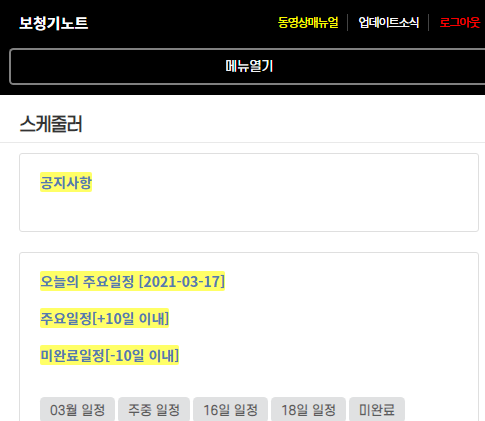1. 스케줄러 휴일표시가 추가되었습니다.