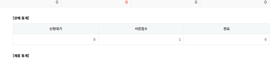 - 장애신청 통계 (신청대기, 서류접수, 완료)
