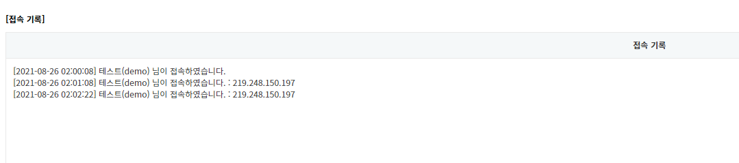 - 통계메뉴 상세화면 제일 아래 접속기록이 추가되었습니다.