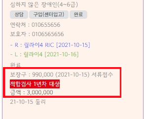 - 고객관리 목록에는 "보장구 신청일자"를 기준으로 1년차 ~ 4년차 대상자에 대해서 목록에 표기됩니다.