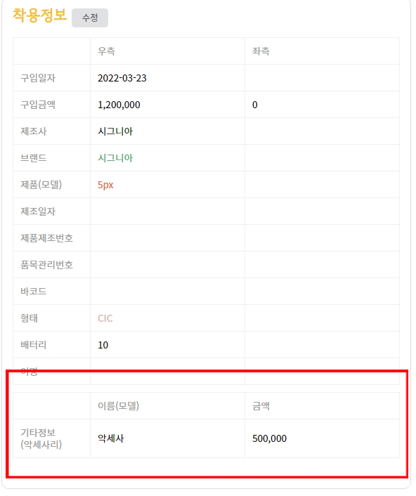2. 착용정보 "기타정보 (악세사리)" 항목 추가