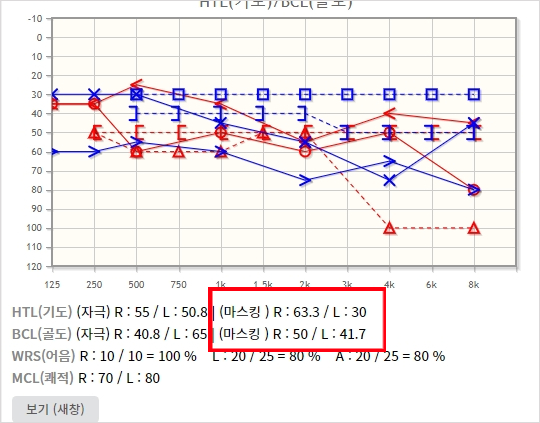 - 청력검사 항목에 (마스킹) 평균값의 정보가 추가되었습니다.