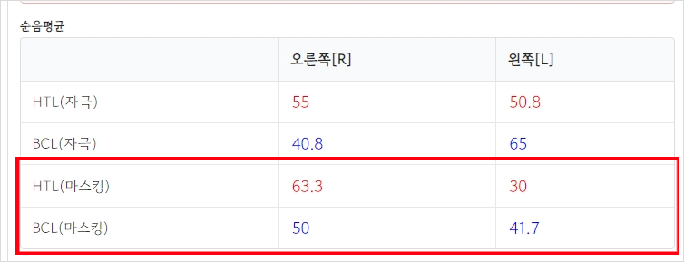 2. 청력검사(마스킹) 평균값 표기 추가