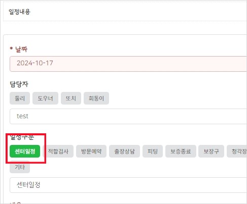3. 주요일정 등록 "센터일정" 고정 카테고리 추가