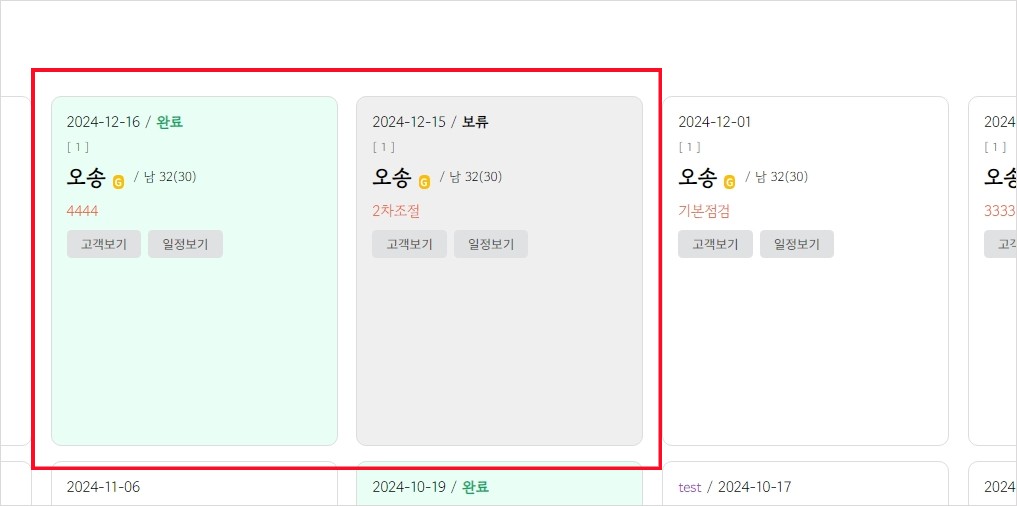 4. 주요일정 완료/보류 구분의 카드 색상 추가