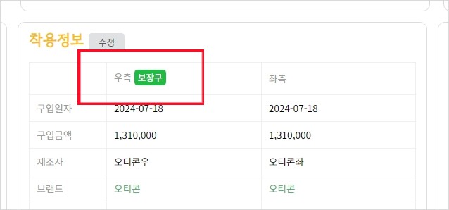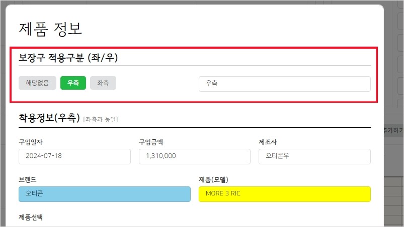 - 착용정보에 우측/좌측에 대하여 보장구 적용여부가 추가되었습니다.